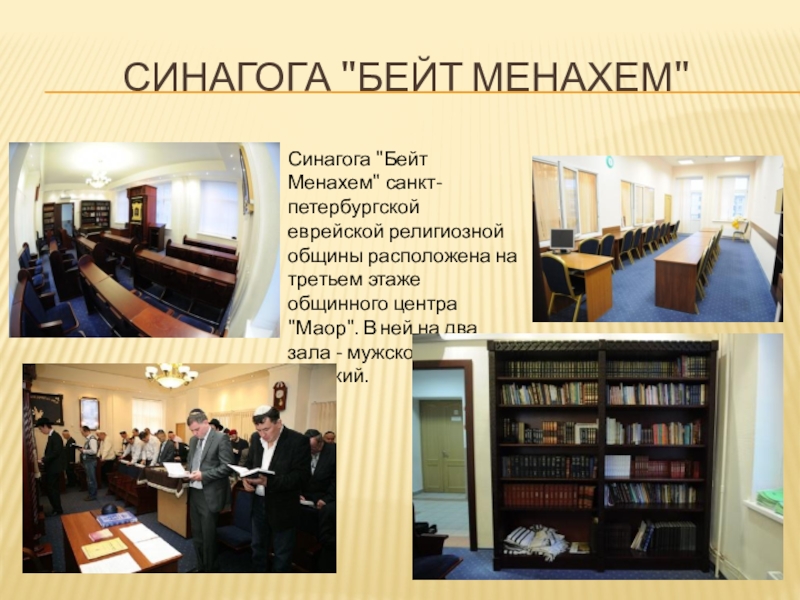 Синагога "Бейт Менахем" санкт-петербургской еврейской религиозной общины расположена на третьем этаже