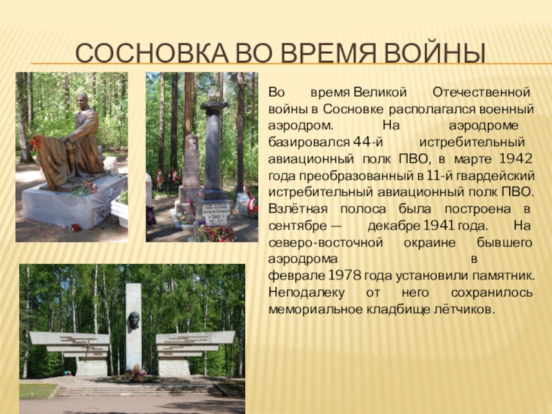 Во время Великой Отечественной войны в Сосновке располагался военный аэродром. На