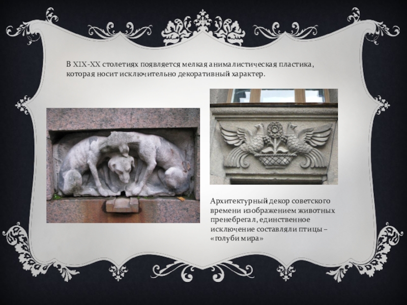 Архитектурный декор советского времени изображением животных пренебрегал, единственное исключение составляли птицы – «голуби мира»