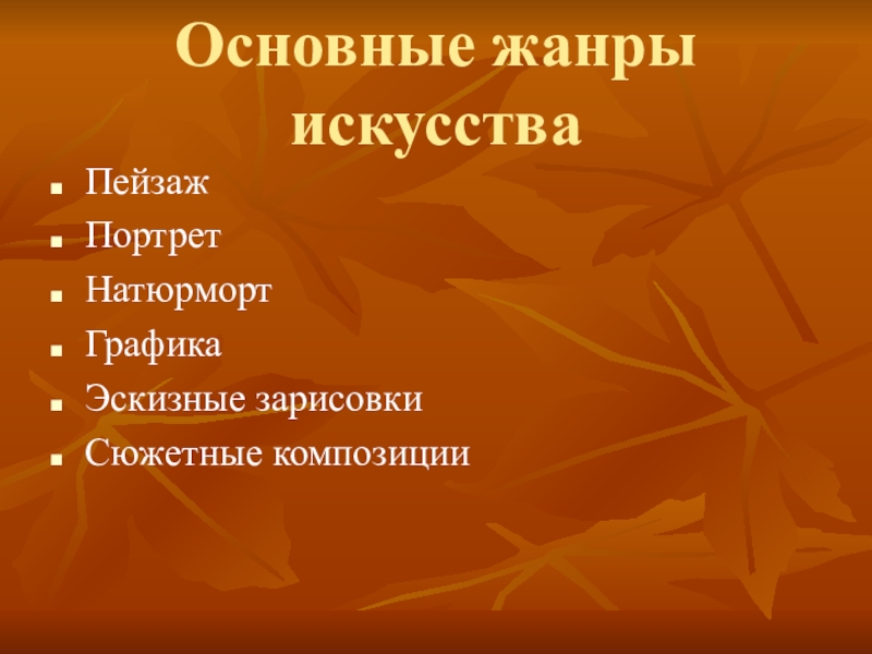 Слайд 23Основные жанры искусства