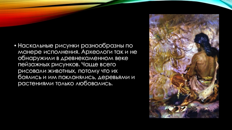 древнекаменном веке пейзажных рисунков. Чаще всего рисовали животных, потому что их боялись и им поклонялись, деревьями и растениями только любовались.