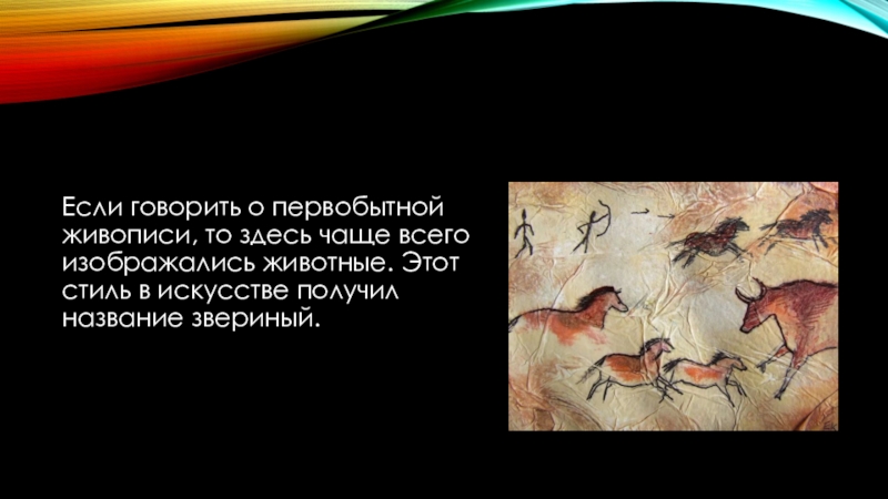 Слайд 5Если говорить о первобытной живописи, то здесь чаще всего изображались животные.