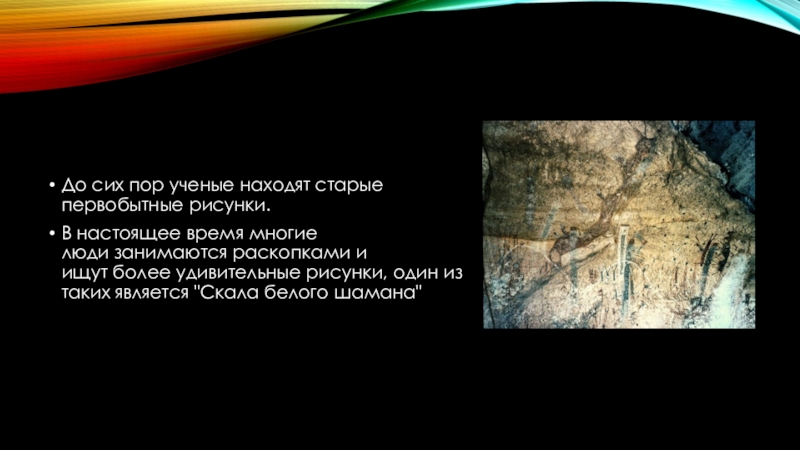 До сих пор ученые находят старые первобытные рисунки.В настоящее время многие люди занимаются раскопками и ищут более удивительные рисунки, один
