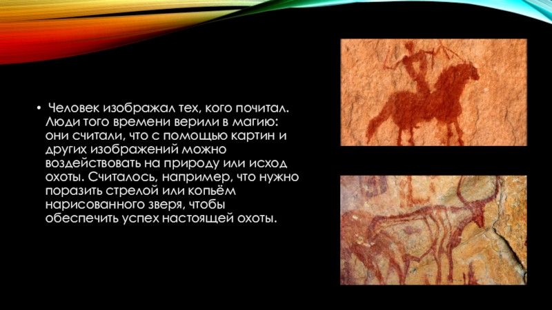 Слайд 9 Человек изображал тех, кого почитал. Люди того времени верили в