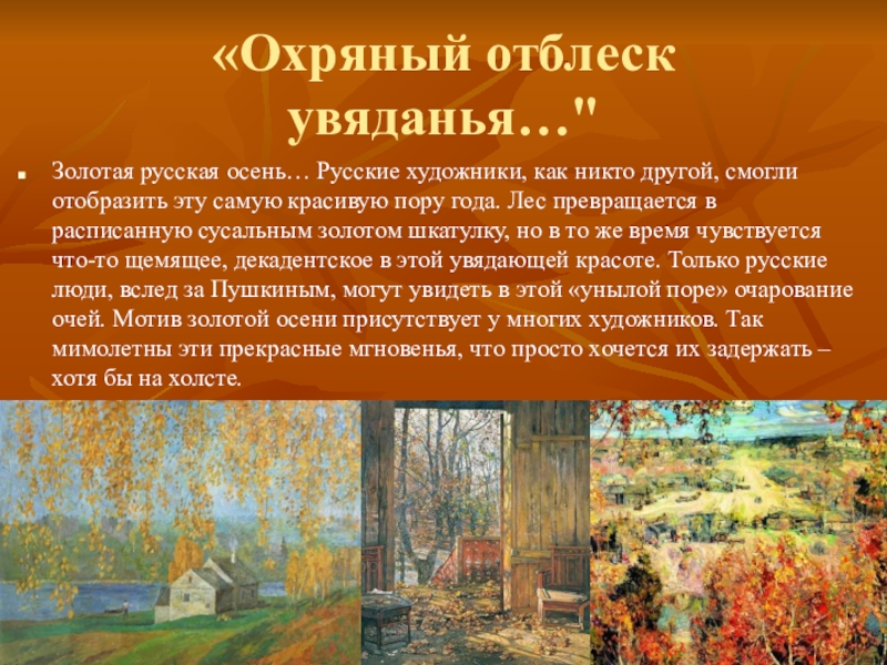 Слайд 6«Охряный отблеск увяданья…"