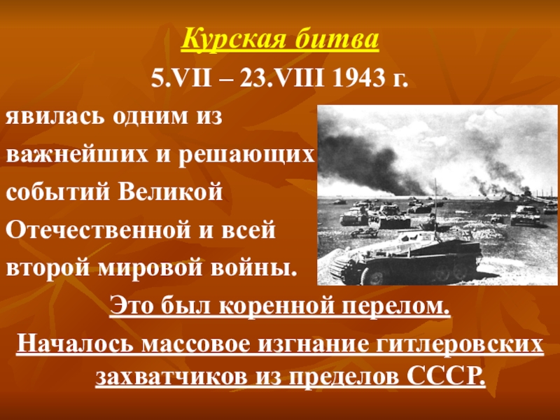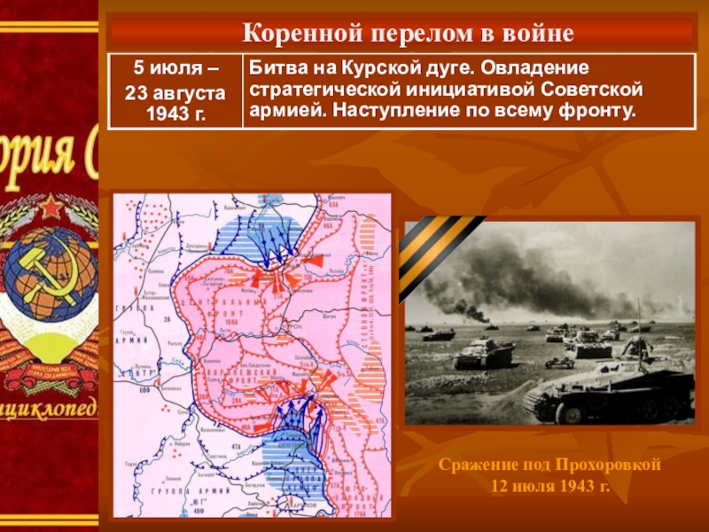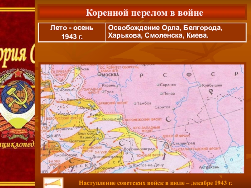 19 ноября 1942г. – конец 1943г. – коренной перелом. Переход стратегической инициативы к советским вооружённым силам