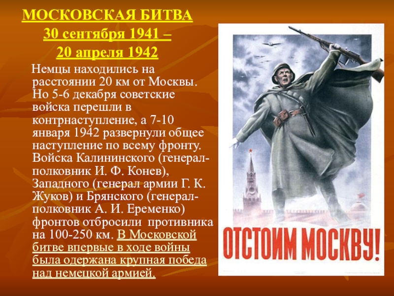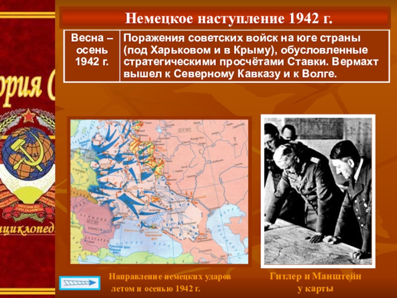 1942г. – наступление немецко – фашистских войск и переход советских войск к стратегической обороне