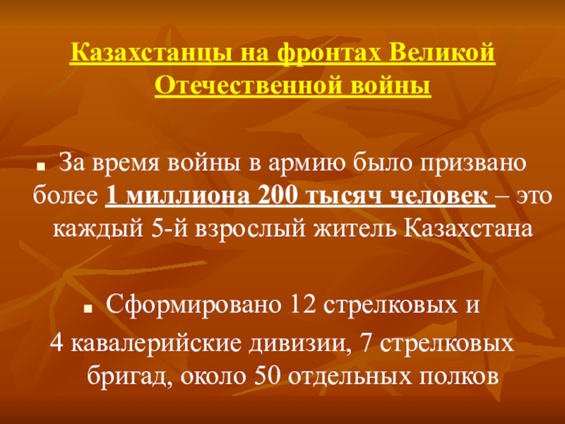 На фронт ушло 1 млн. 200 тыс. казахстанцев, каждый