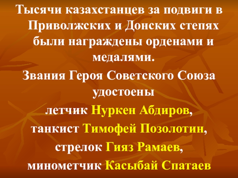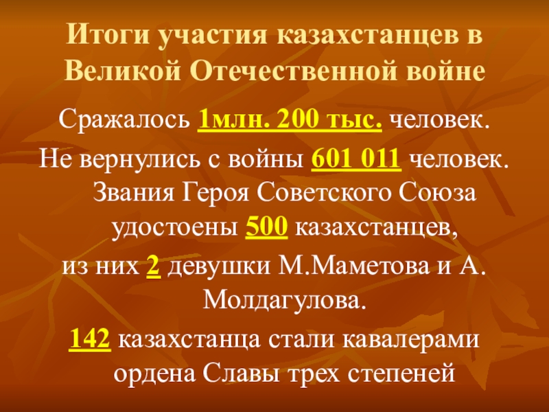 Слайд 84Итоги участия казахстанцев в Великой Отечественной войне