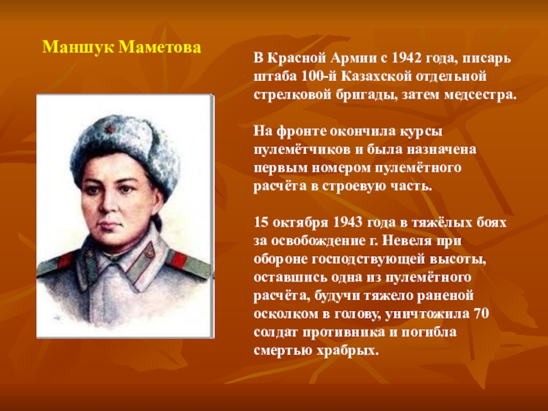 Слайд 86В Красной Армии с 1942 года, писарь штаба 100-й Казахской отдельной