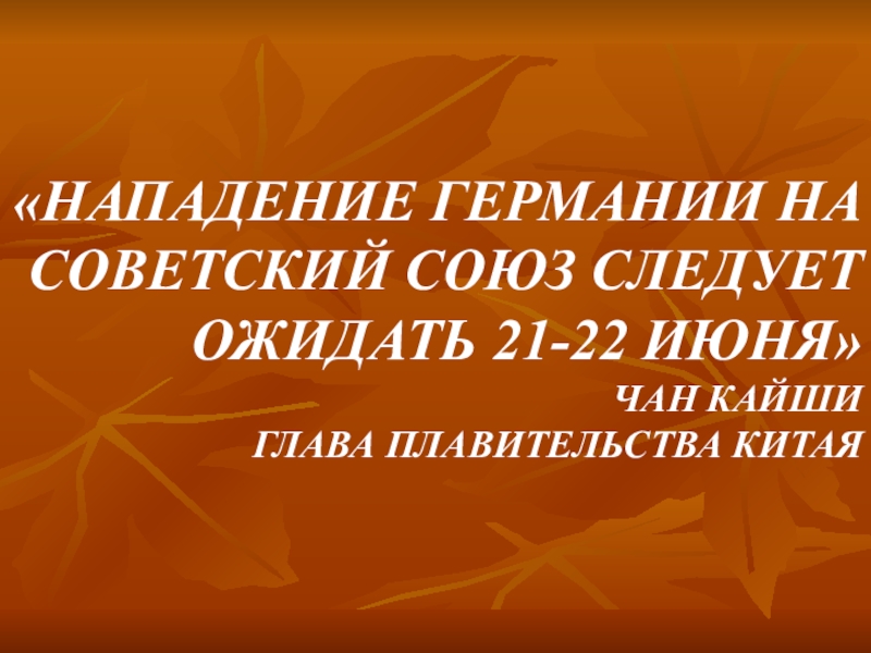 Слайд 3«НАПАДЕНИЕ ГЕРМАНИИ НА СОВЕТСКИЙ СОЮЗ СЛЕДУЕТ ОЖИДАТЬ 21-22 ИЮНЯ»