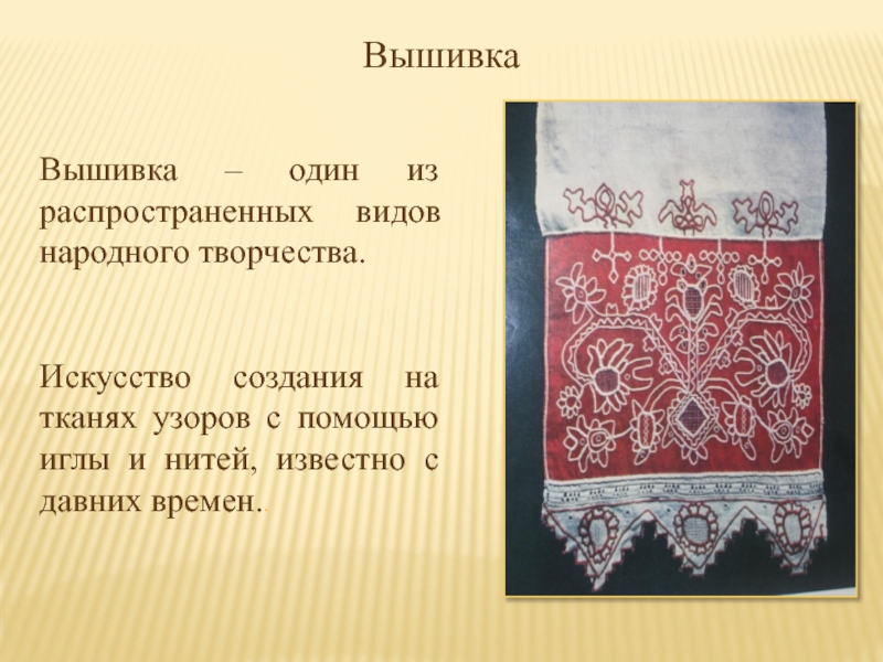 тканях узоров с помощью иглы и нитей, известно с давних времен..