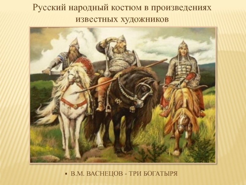 Слайд 40 В.М. ВАСНЕЦОВ - ТРИ БОГАТЫРЯ