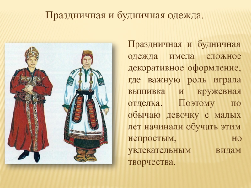 Праздничная и будничная одежда имела сложное декоративное оформление,