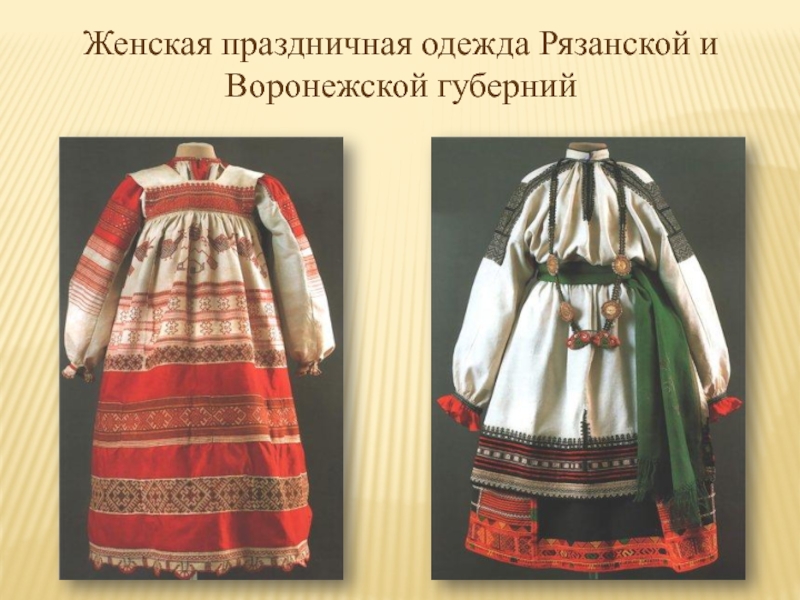 Слайд 7Женская праздничная одежда Рязанской и Воронежской губерний
