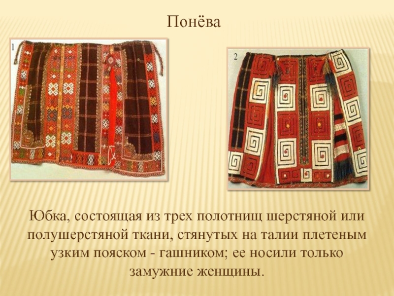 на талии плетеным узким пояском - гашником; ее носили только замужние женщины.