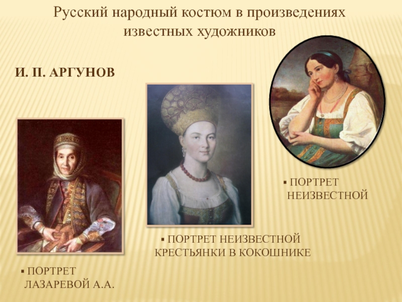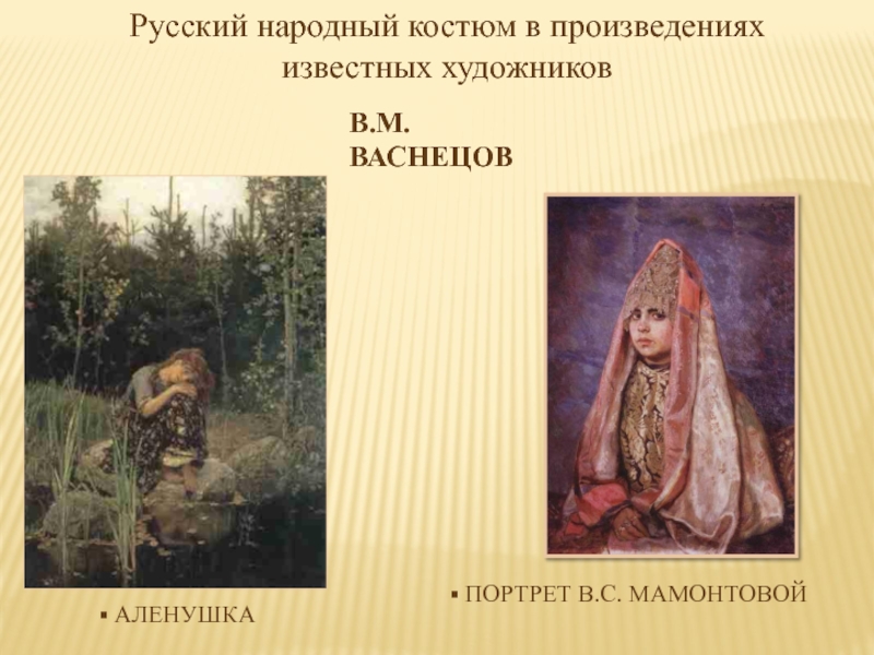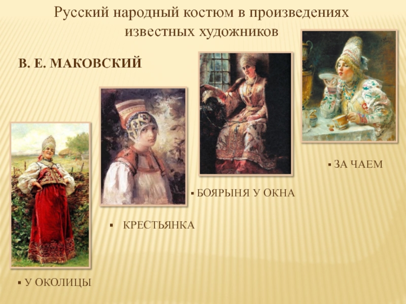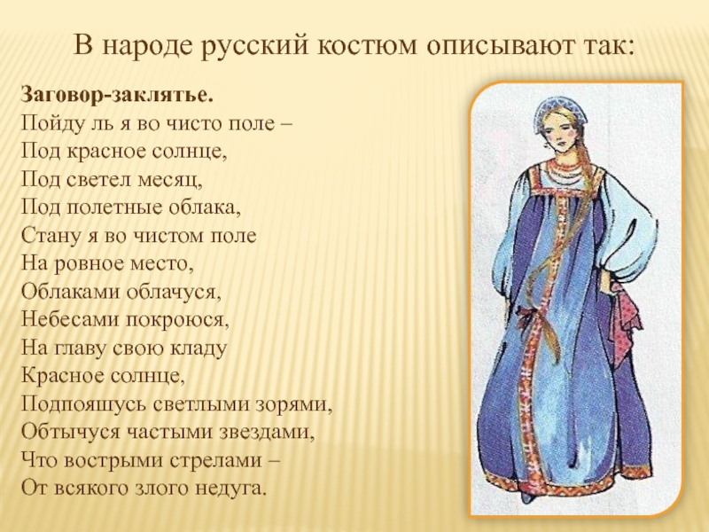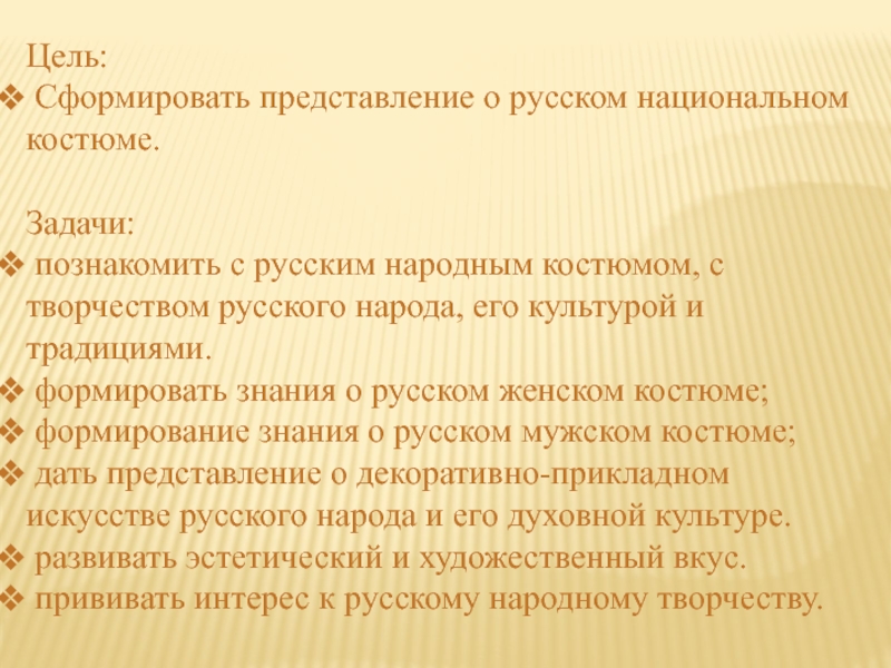народным костюмом, с творчеством русского народа, его культурой и традициями.