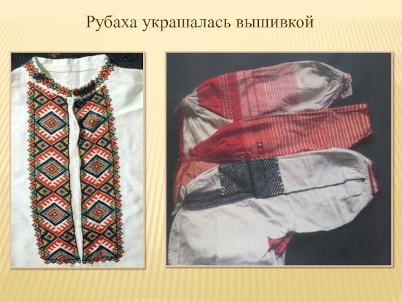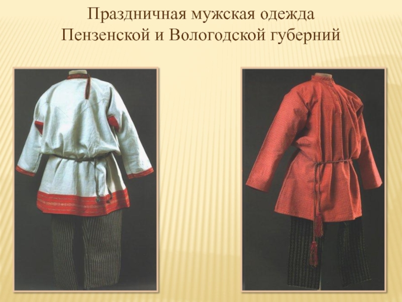 из домотканого холста. Рубахи носили навыпуск и подпоясывали узким поясом или цветным шнуром.