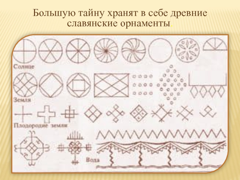 Слайд 13Большую тайну хранят в себе древние славянские орнаменты.