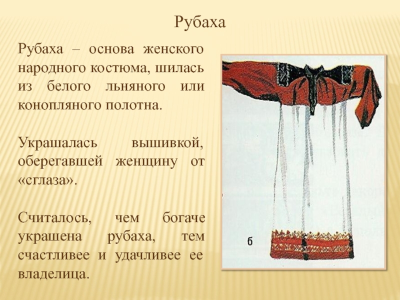 Рубаха – основа женского народного костюма, шилась из белого льняного или