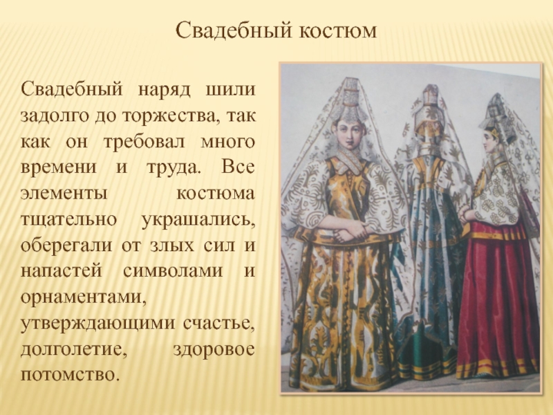 Свадебный наряд шили задолго до торжества, так как он требовал