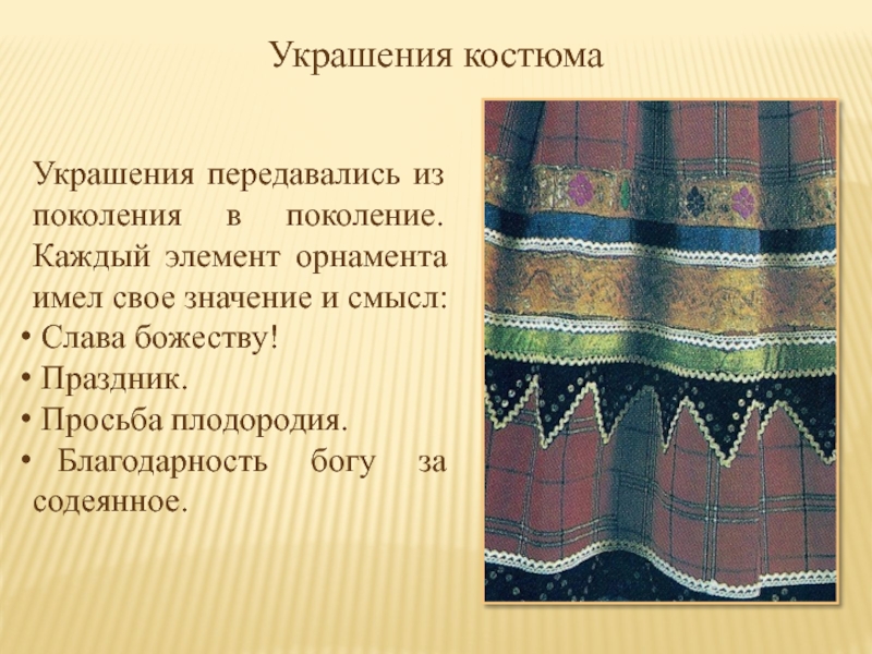 много времени и труда. Все элементы костюма тщательно украшались, оберегали от злых сил и напастей символами и орнаментами,