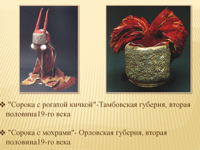 Слайд 23 "Сорока с рогатой кичкой"-Тамбовская губерня, вторая половина19-го века