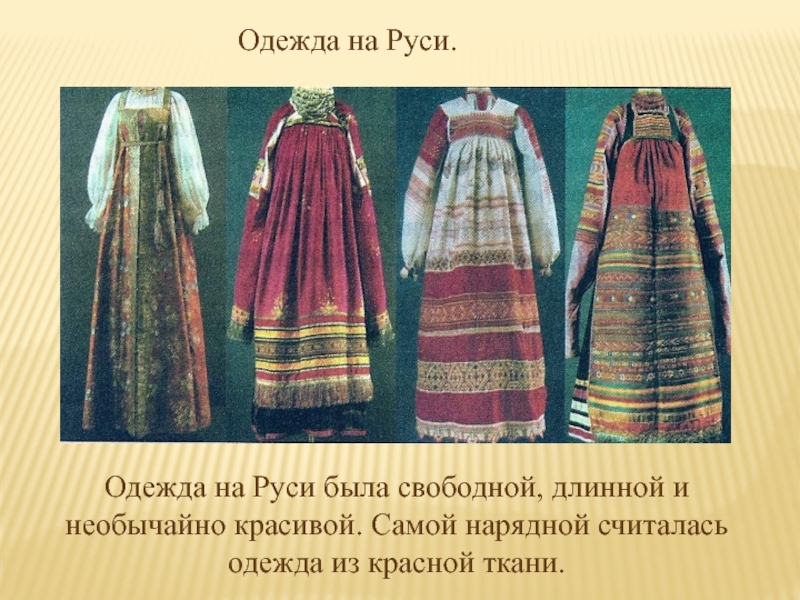 Одежда на Руси была свободной, длинной и необычайно красивой.