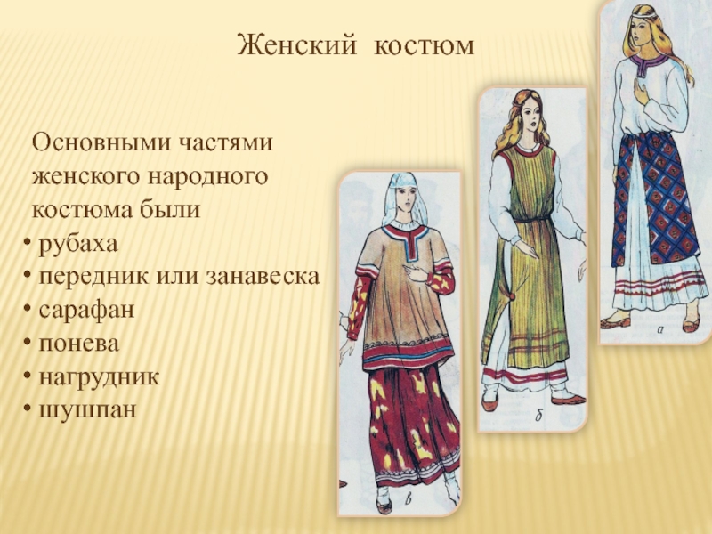 Сарафан - народная женская одежда в виде платья без рукавов.