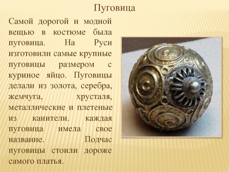 Самой дорогой и модной вещью в костюме была пуговица. На Руси
