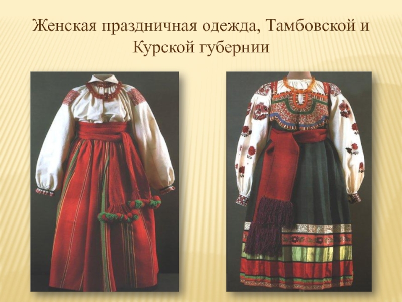 Слайд 8Женская праздничная одежда, Тамбовской и Курской губернии