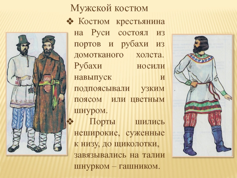Костюм крестьянина на Руси состоял из портов и рубахи
