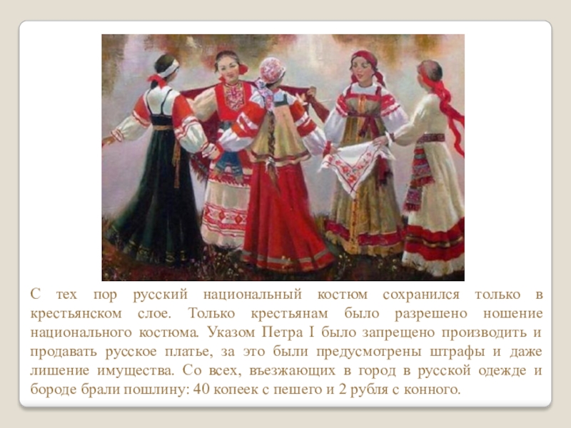 Слайд 28С тех пор русский национальный костюм сохранился только в крестьянском слое.