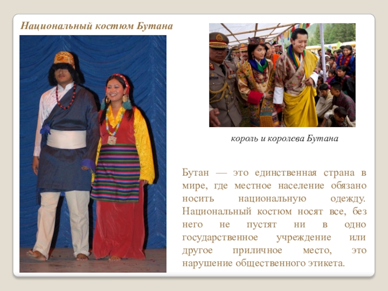 Слайд 16Бутан — это единственная страна в мире, где местное население обязано