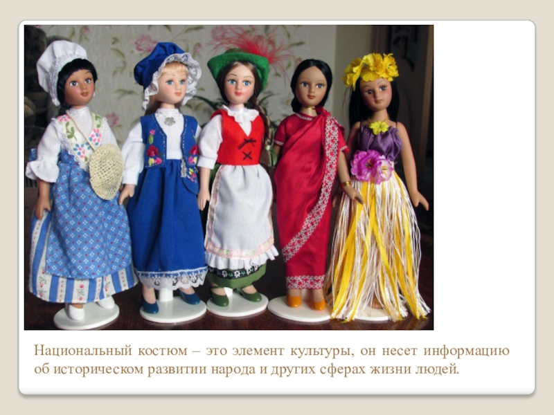 Слайд 5Национальный костюм – это элемент культуры, он несет информацию об историческом
