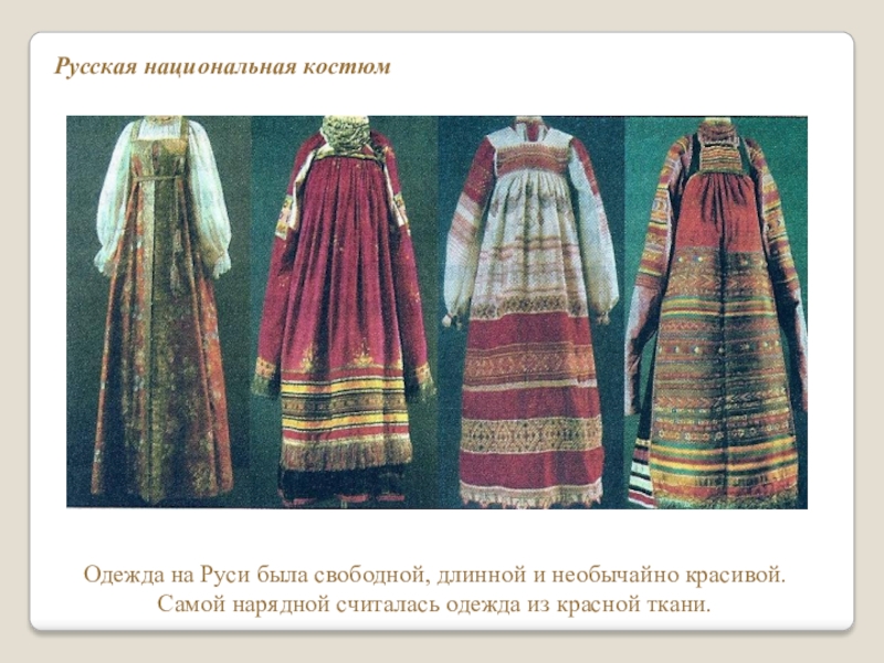 Слайд 26Одежда на Руси была свободной, длинной и необычайно красивой. Самой нарядной