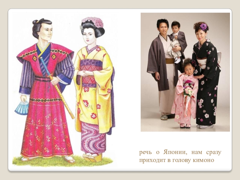 Слайд 8речь о Японии, нам сразу приходит в голову кимоно