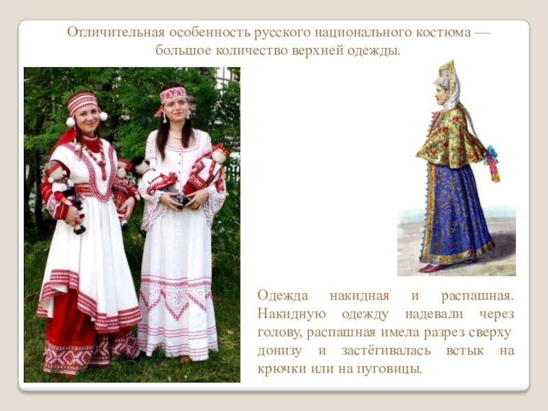 Отличительная особенность русского национального костюма — большое количество верхней одежды.