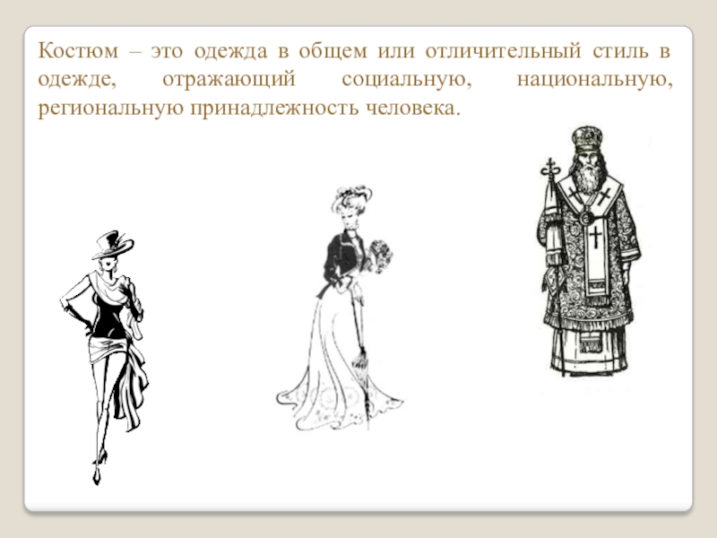 Слайд 3Костюм – это одежда в общем или отличительный стиль в одежде,