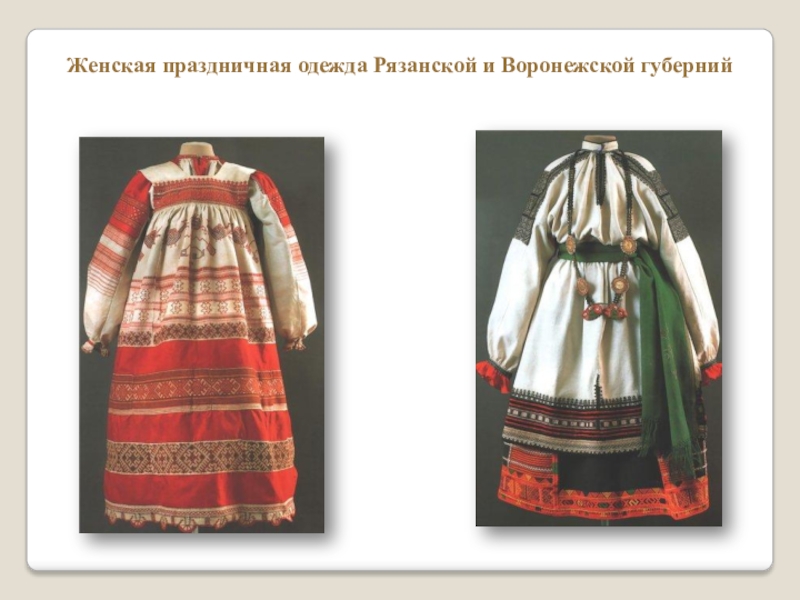 Слайд 32Женская праздничная одежда Рязанской и Воронежской губерний