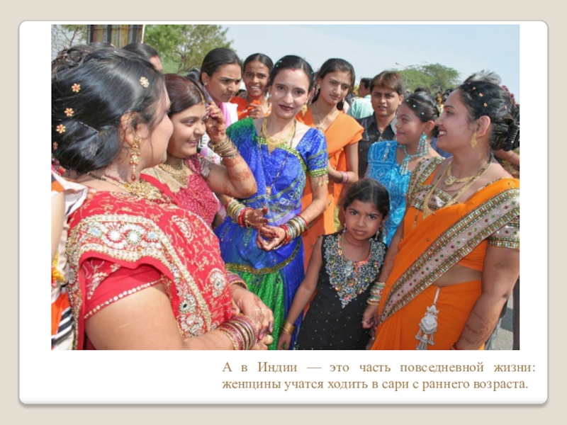 Слайд 11А в Индии — это часть повседневной жизни: женщины учатся ходить