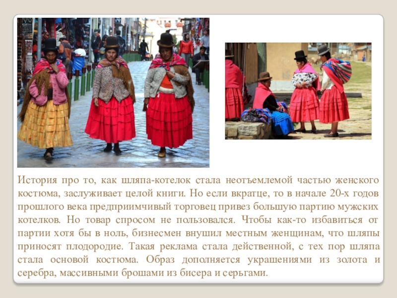 Слайд 24Этой южноамериканской стране больше половины населения ходят в национальной одежде. Инициатором