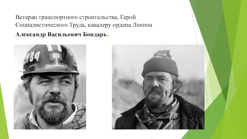 Слайд 6Ветеран транспортного строительства, Герой Социалистического Труда, кавалеру ордена Ленина Александр Васильевич