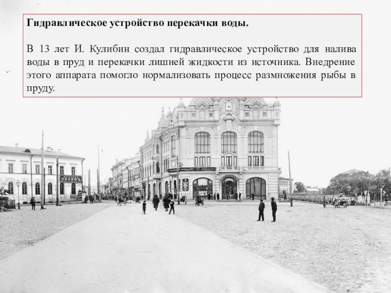 В 13 лет И. Кулибин создал гидравлическое устройство
