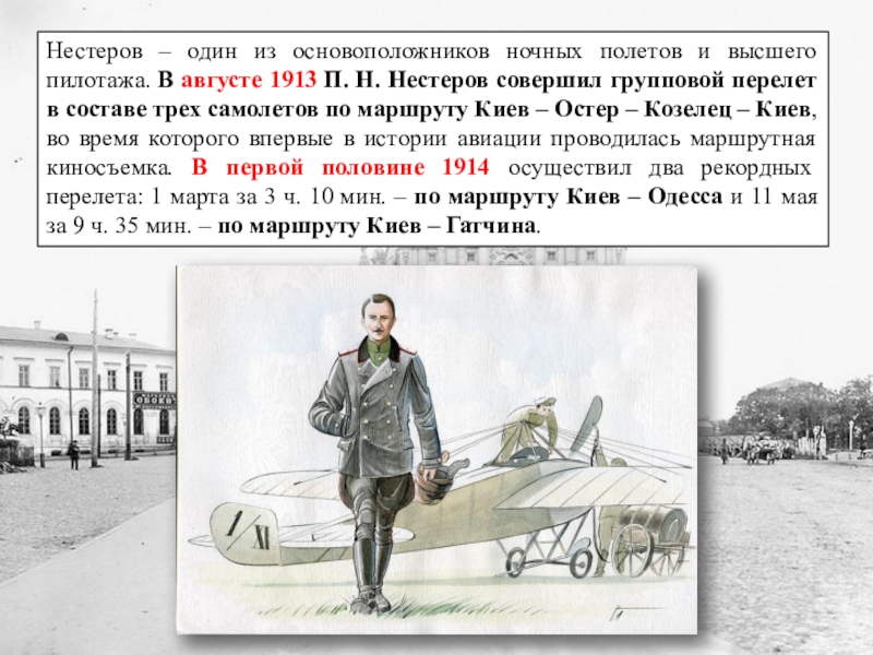 Слайд 37Нестеров – один из основоположников ночных полетов и высшего пилотажа. В