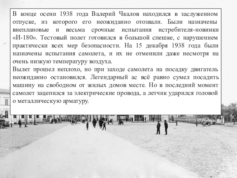 Слайд 51В конце осени 1938 года Валерий Чкалов находился в заслуженном отпуске,