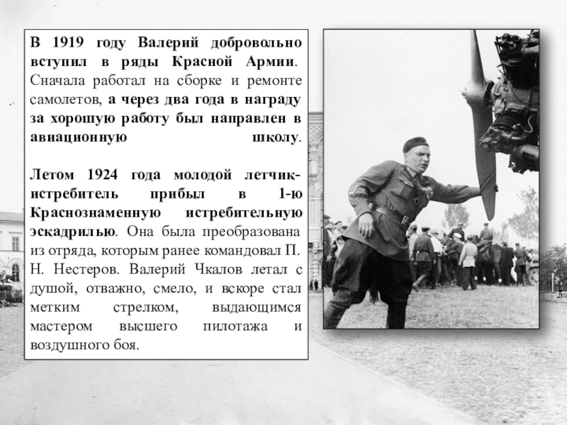 Слайд 46В 1919 году Валерий добровольно вступил в ряды Красной Армии. Сначала