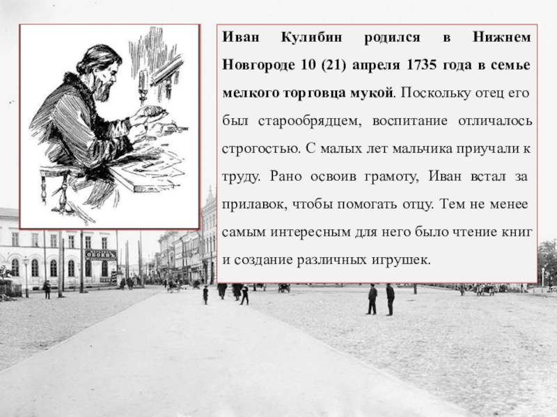 Слайд 3Иван Кулибин родился в Нижнем Новгороде 10 (21) апреля 1735 года
