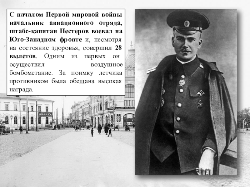 Слайд 39С началом Первой мировой войны начальник авиационного отряда, штабс-капитан Нестеров воевал