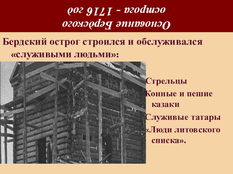 Бердский острог строился и обслуживался «служивыми людьми»: